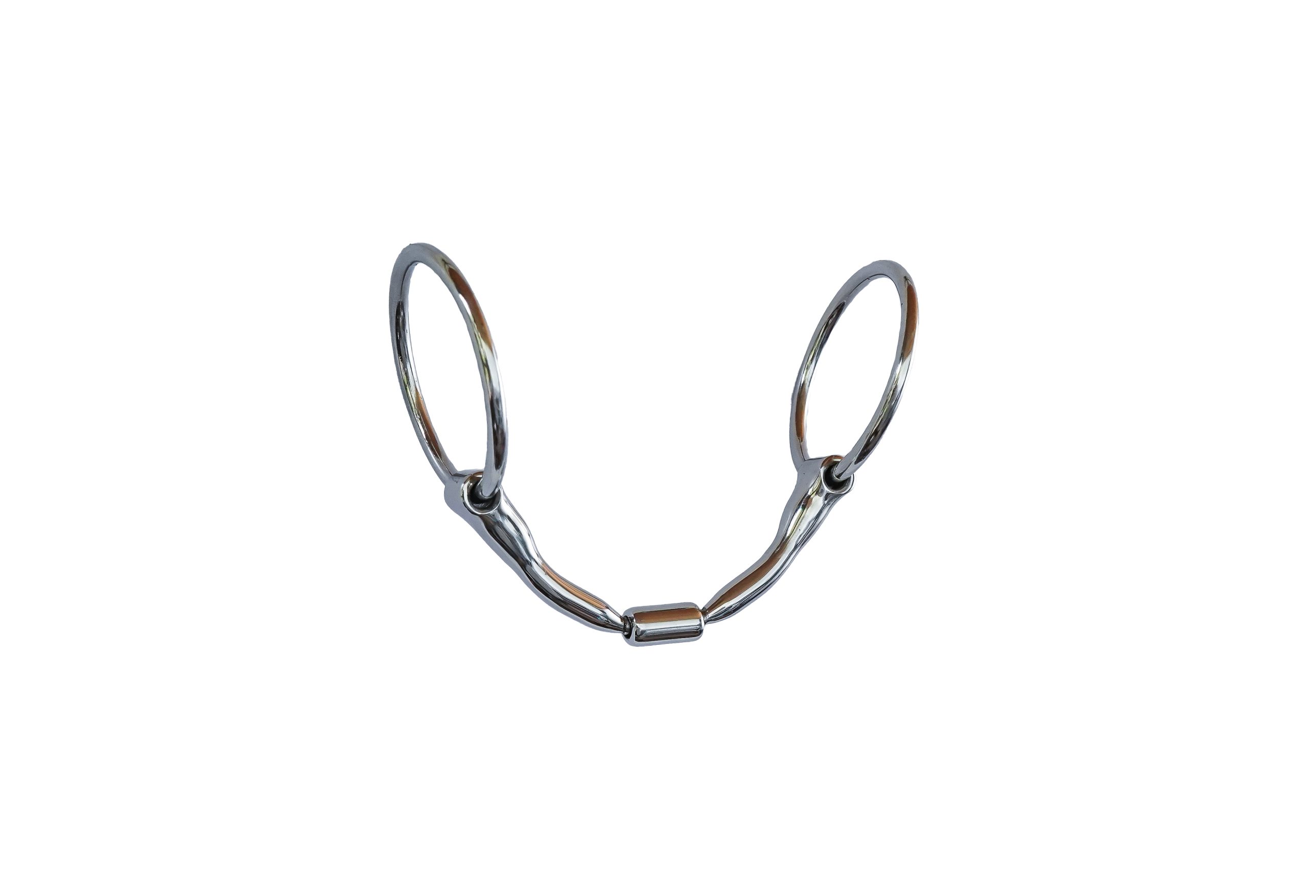 The barrel centre keeps the bits constant shape whilst forming a joint to give some movement in the mouthpiece, the barrel gives the bit independent movement of either side to give a more definite signal to the horse, as there is no twist to the rest of the bit as there is with other double jointed bits. With the barrel being stiller than a conventional lozenge or french link it doesn’t irritate the palate and as it restricts the amount of movement In the bit it also restricts the bit from putting pressure on the palate